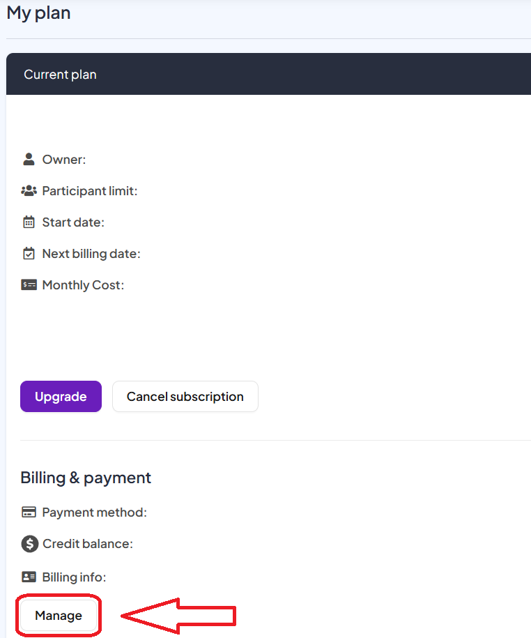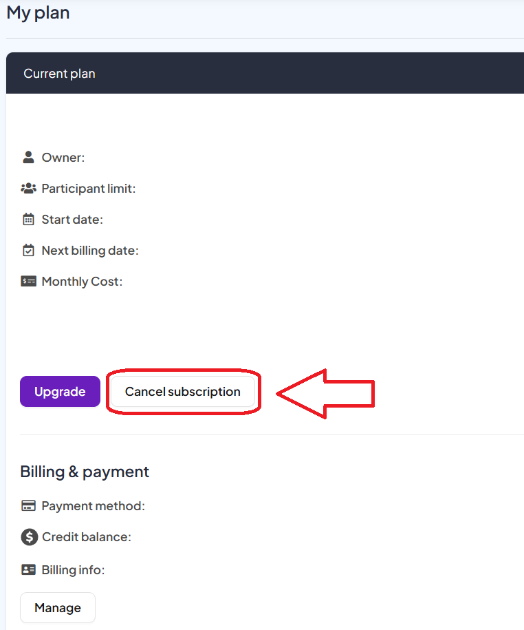 2. Using the 'Cancel subscription' button in 'Billing & Payment' page