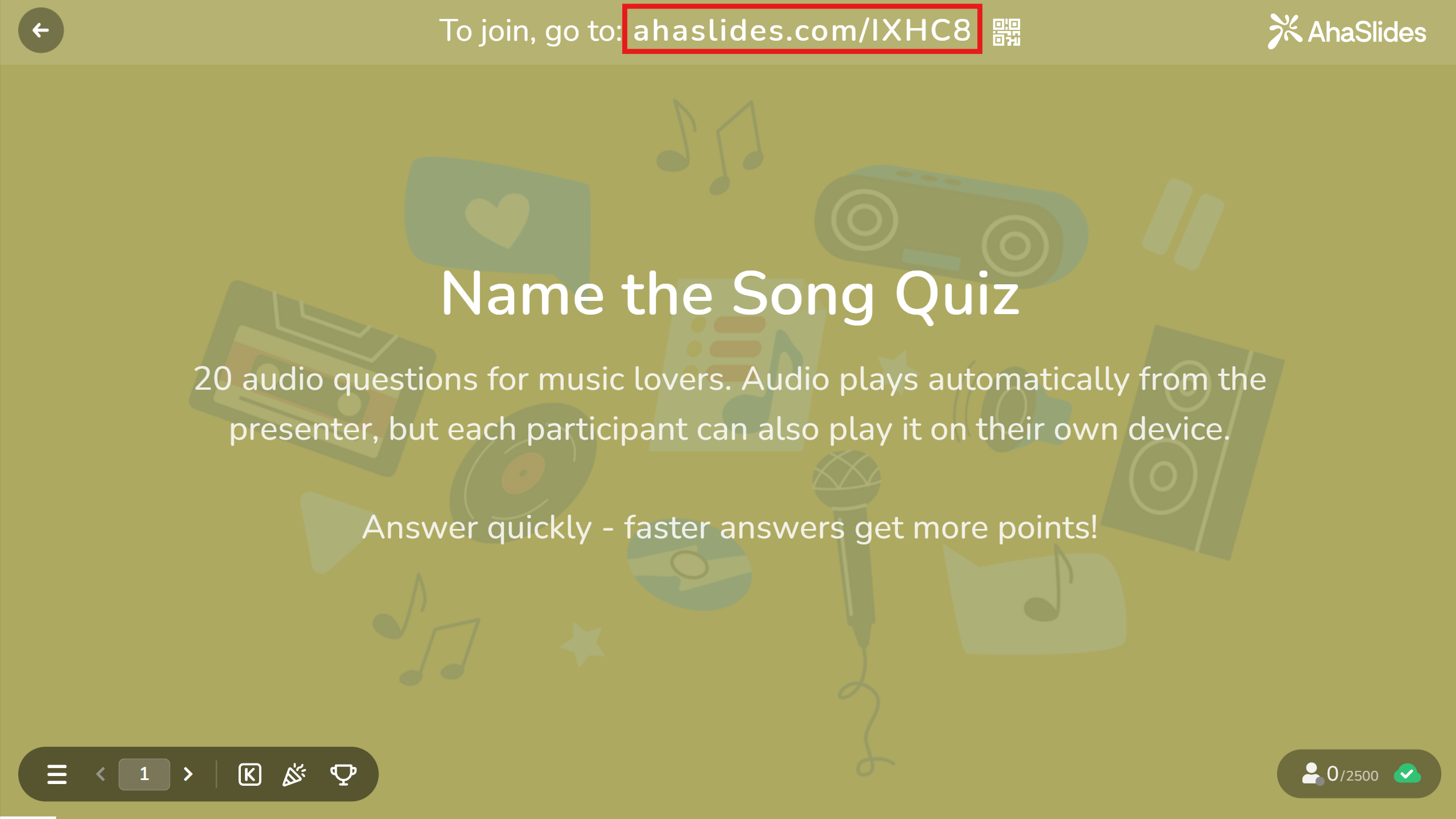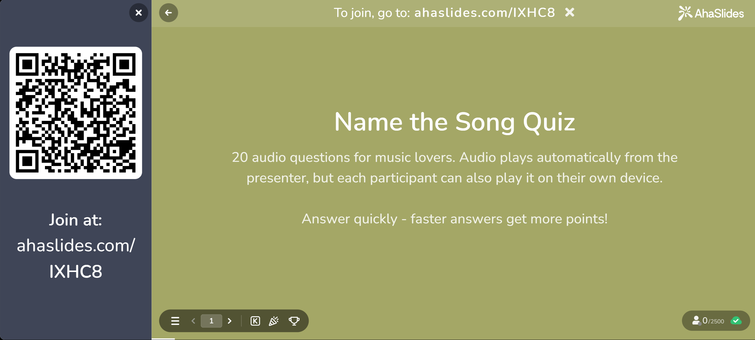 - Be unique (it must not be the same as any other AhaSlides presentation's code)