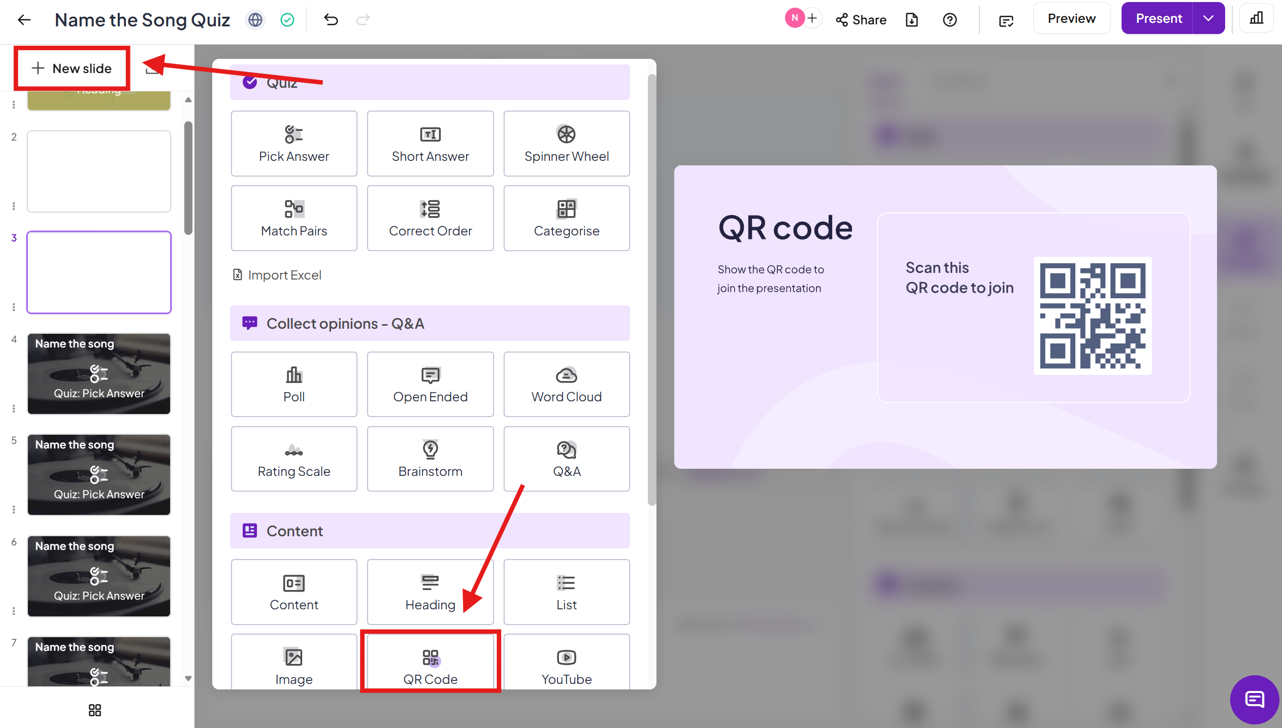 'QR Code'. You can drag this slide to the start or near the start of your presentation so that your participants can join it immediately.
